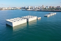 本工事は、那覇港の浦添ふ頭地区浦添第一防波堤の延伸工事として、ケーソン2函をフローティングドック(FD)台船で製作し、港内に仮置きするものです。短い工期で、施工時期としては梅雨時期の降雨や沖縄特有の突然の台風に悩ませられながらも、無事に竣工することができました。