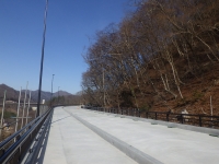 本工事では、水没する関係住民の方々の移転先である長野原町大字川原湯地先にある打越代替地と、上湯原代替地を結ぶ全長約2㎞を整備する町道の内、鋼製桟道区間(延長約119m)の施工を行いました。鋼製桟道とは、鋼管杭、H形綱を主体とした杭、桁、格点および床版からなる非合成桁ラーメン構造の桟道です。