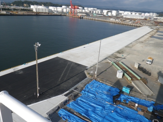 本工事は、小名浜港藤原ふ頭地区岸壁(-10m)および岸壁取付先端の災害復旧工事を行う工事であり、被災した舗装・上部工等の撤去後、岸壁の安定性向上を目的とした高比重コンクリート、軽量混合処理工を行いました。