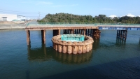 本工事では、四日市港霞ヶ浦北ふ頭地区道路霞4号幹線橋梁下部(P51橋脚)のRC橋脚工(基礎杭、橋脚躯体工)、仮設工を実施しました。