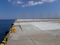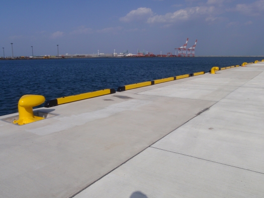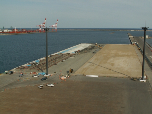 本工事では、常陸那珂港中央ふ頭地区岸壁(-9m)の裏込・裏埋工、仮設工、上部工、付属工及び舗装工を実施しました。
