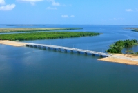 本工事では、スリランカ民主社会主義共和国東部州にあるバティカロア潟に於いて東西間の交通路確保のために橋梁を新設しました。