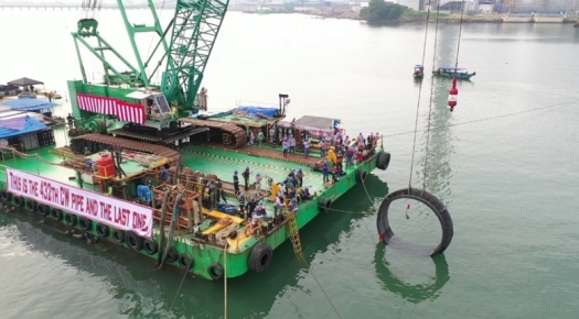 インドネシア 火力発電所(100万kw×2基) 取排水管工事 水路管敷設工、埋め戻し工