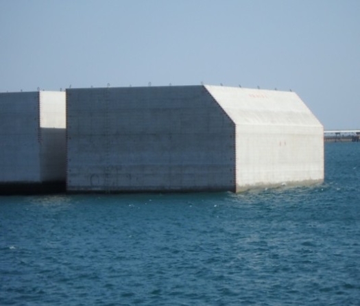 ※ドライドックとは、ケーソンを製作するための専用施設であり、陸にケーソンを製作するスペースを掘り込み、入口部をゲートで海と仕切り、海水の注排水が可能な施設です。