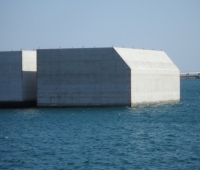 本工事は、鹿島港外港地区南防波堤にて使用する本体工(ケーソン式)を製作するものです。ドライドック※での陸上製作、進水、海上での海上打継を行い、約5,900t/函のケーソンを2函製作しました。