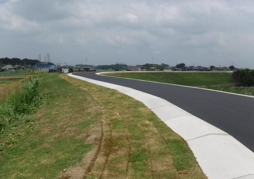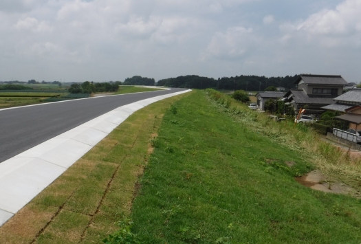 本工事では、鬼怒川における河川激甚災害対策特別緊急事業により、常総市向石下地先から篠山地先までの延長約840mの堤防整備を行いました。