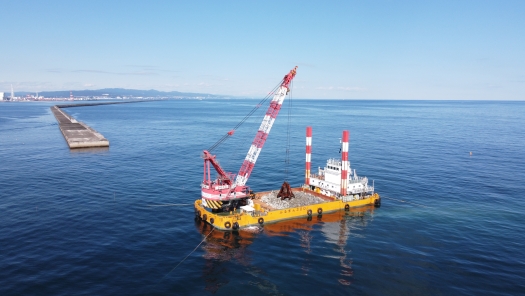 本工事では、茨城港常陸那珂港区外港地区東防波堤の基礎工及び被覆・根固工を施工しました。