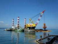 本工事では、中津港(田尻地区)航路(-12m)の共通工、潜水探査工、浚渫工、土捨工および干潟実証試験施設の撤去工を行いました。