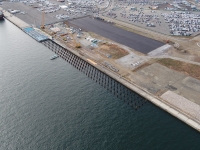 本事業は、西日本エリアの中古車輸出拠点である堺泉北港において、助松地区・汐見沖地区の2箇所に分散している中古車輸出の取り扱いを汐見沖地区に集約するための新たな岸壁を整備する事業です。